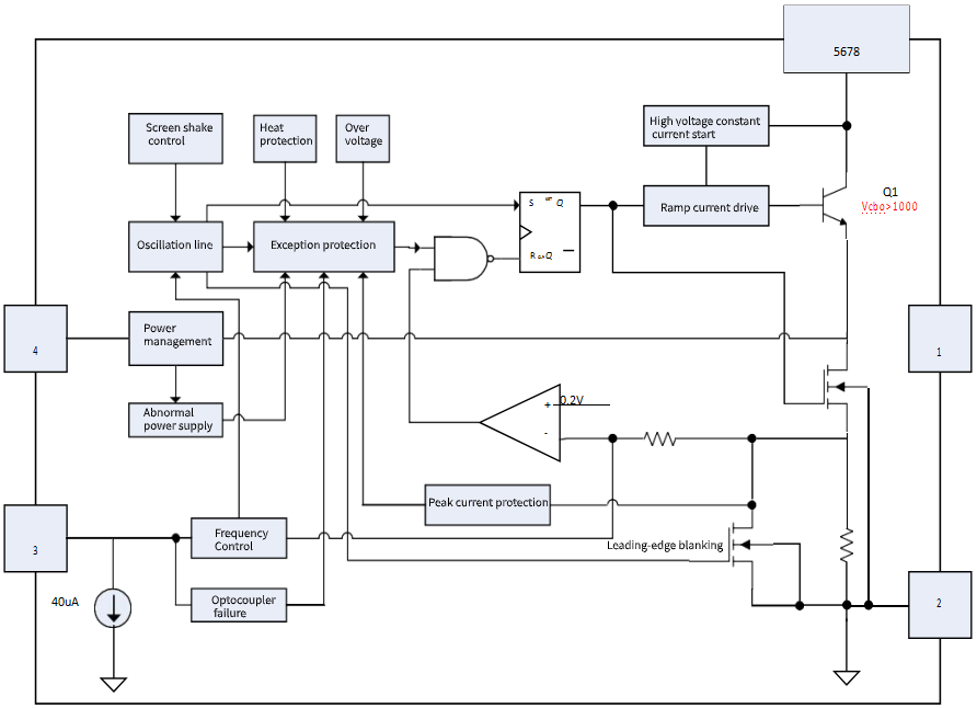 Built-in 1000V high-voltage power tube